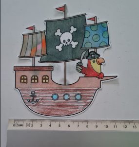 Nadat je je ontwerp hebt getekend hebt en ingekleurd, is het tijd om het uit te knippen. Dit lukt het makkelijkst met een klein schaartje. Vraag een volwassene om je te helpen met de schaar als dat nodig is.